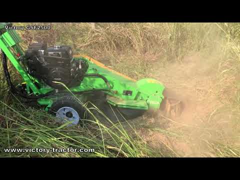 Die Victory GSF-2500 ist eine professionelle Wurzelfräse und Stubbenfräse mit einem hydraulischen Fahrantrieb, der beide Räder mit je einem Hydraulikmotor antreibt und mit einem kraftvollen Kohler Command Pro 4-Takt Benzinmotor ausgestattet ist. Dabei wird eine Geschwindigkeit von etwa 3,5km/h erreicht. Der Fahrantrieb der etwa 230kg schweren Wurzelfräse erleichtert nicht nur das Fahren im Gelände und an Steigungen, sondern ermöglicht das Be- und Entladen der Maschine über eine Rampe von einem Anhänger durch nur eine Person. Garten- und Landschaftsbaubetriebe können dadurch Personal effizienter einsetzen und auch Maschinenvermietern wird der Transport erheblich erleichtert. Durch den etwa 90cm großen Schwenkbereich der Wurzelfräse können auch Baumstümpfe bis zu 1mtr. Durchmesser in etwa 90min (15cm ober- und unterhalb Erdniveau) entfernt werden, ohne dass Schäden auf Ihrem Grundstück durch die 72cm schmale Stubbenfräse entstehen.