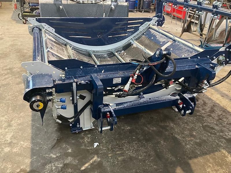 Der Ballen wird mit den integrierten Spießern aufgenommen und auf dem Gerät platziert. Anschließend kann man das Gerät ohne zeitaufwändige Umbauarbeiten mit demselben Ballenspieß aufnehmen und anheben. Die Arretierung sichert die Maschine auf den zwei Spießen. Die zwei robusten Ketten sind mit verzinkten Querstreben verbunden.Der Abwickler ist mit einem Polyethylen- Boden ausgestattet, dadurch wird gewährleistet, dass es zu keinerlei Verschmutzungen im Hofbereich kommt.Optional mit Strohwerfer ( + € 1100.-). Der Werfer ist schwenkbar und kann mit wenigen Handgriffen an bzw. abgebaut werden, somit kann der Rundballenabwickler die Funktion von zwei Maschinen abdecken, er kann als reiner Rundballenabwickler und als Stroheinstreugerät genutzt werden. - 1DW Steuergerät notwendig. Empfohlene Ölleistung 40 - 60 l/min